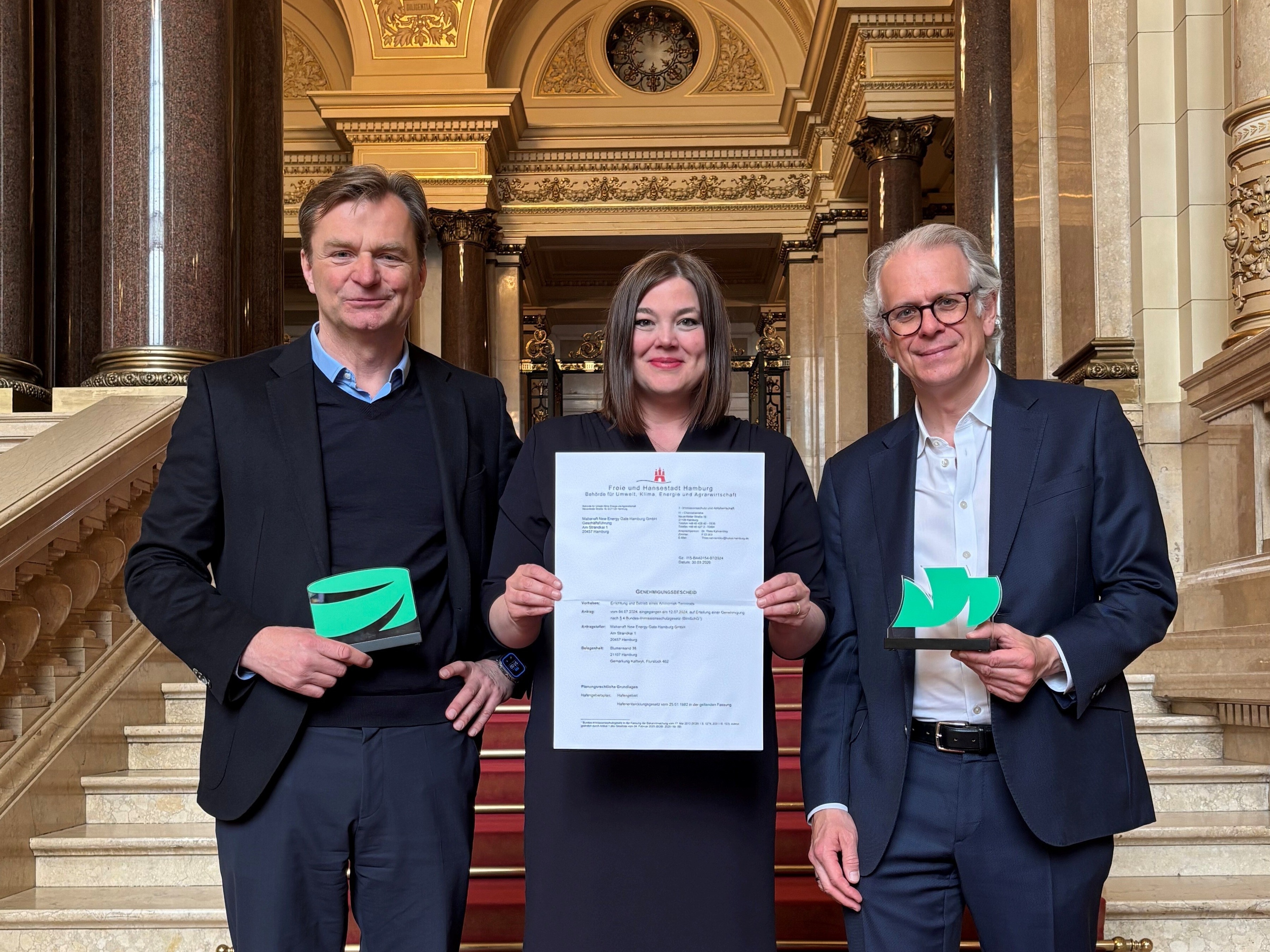 “Following a highly constructive permitting process on both sides, we are pleased to have the official document in our hands, marking a key milestone in taking the project forward,” says Volker Ebeling, Senior Vice President New Energy, Supply & Infrastructure at MB Energy. The planned ammonia terminal will significantly advance the energy transition in Hamburg. “It sends a strong signal towards a future-oriented and reliable supply of energy and raw materials,” he emphasises, adding: “On behalf of MB Energy, I would like to thank everyone involved for their excellent and solution-oriented cooperation throughout this complex process.”